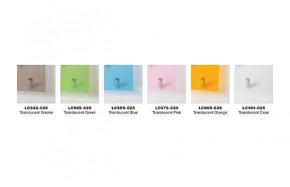 Lucent is the best material choice to fabricate custom and personalized templates, patterns or scrapbooking elements for customers who are crafters, educators, or professionals. The opportunities for customizing Lucent are unlimited -- just add a touch of creativity and imagination to the material. Lucent is a single-ply product in a durable matte finish in a .025 thickness and is available in translucent clear and five translucent colors to meet your needs. Lucent laser cuts easily to create a smooth finished edge. Add a splash of color or personalization with screen, pad or UV-LED printing to create the ultimate finished product.